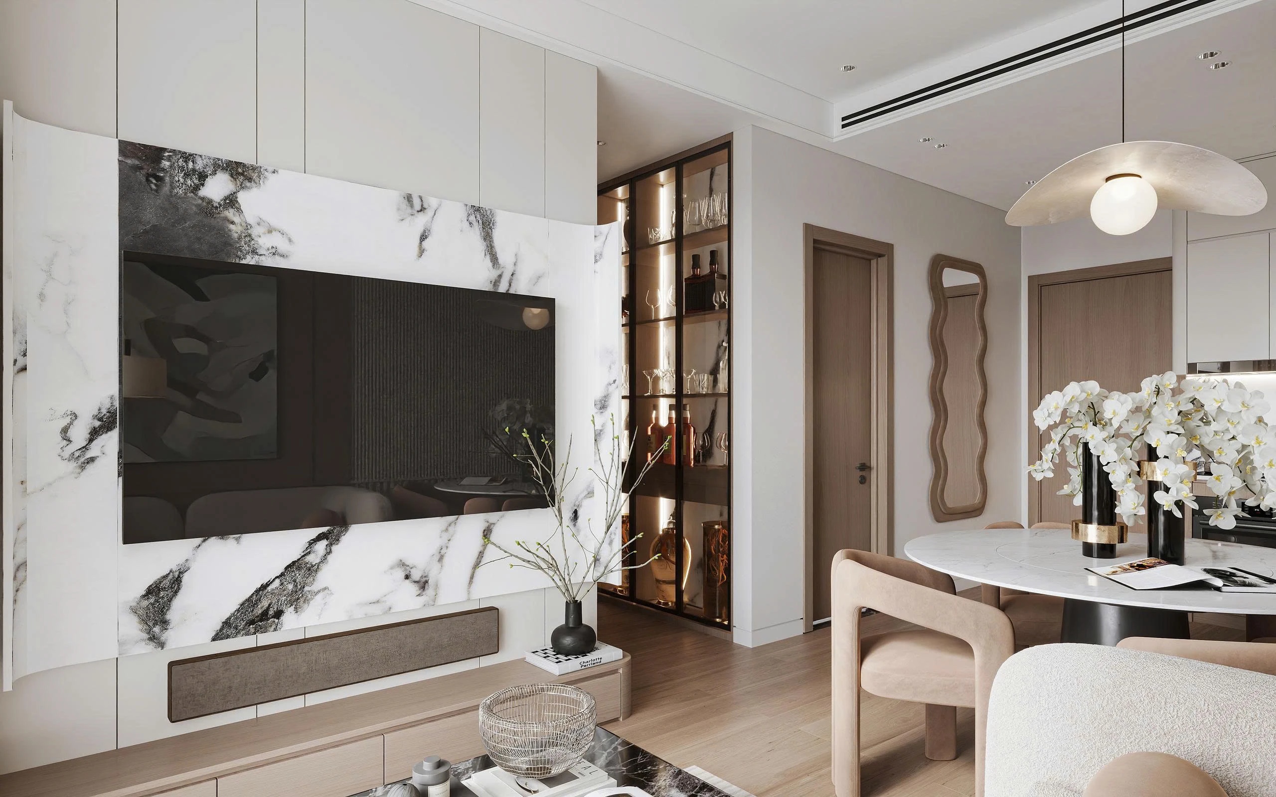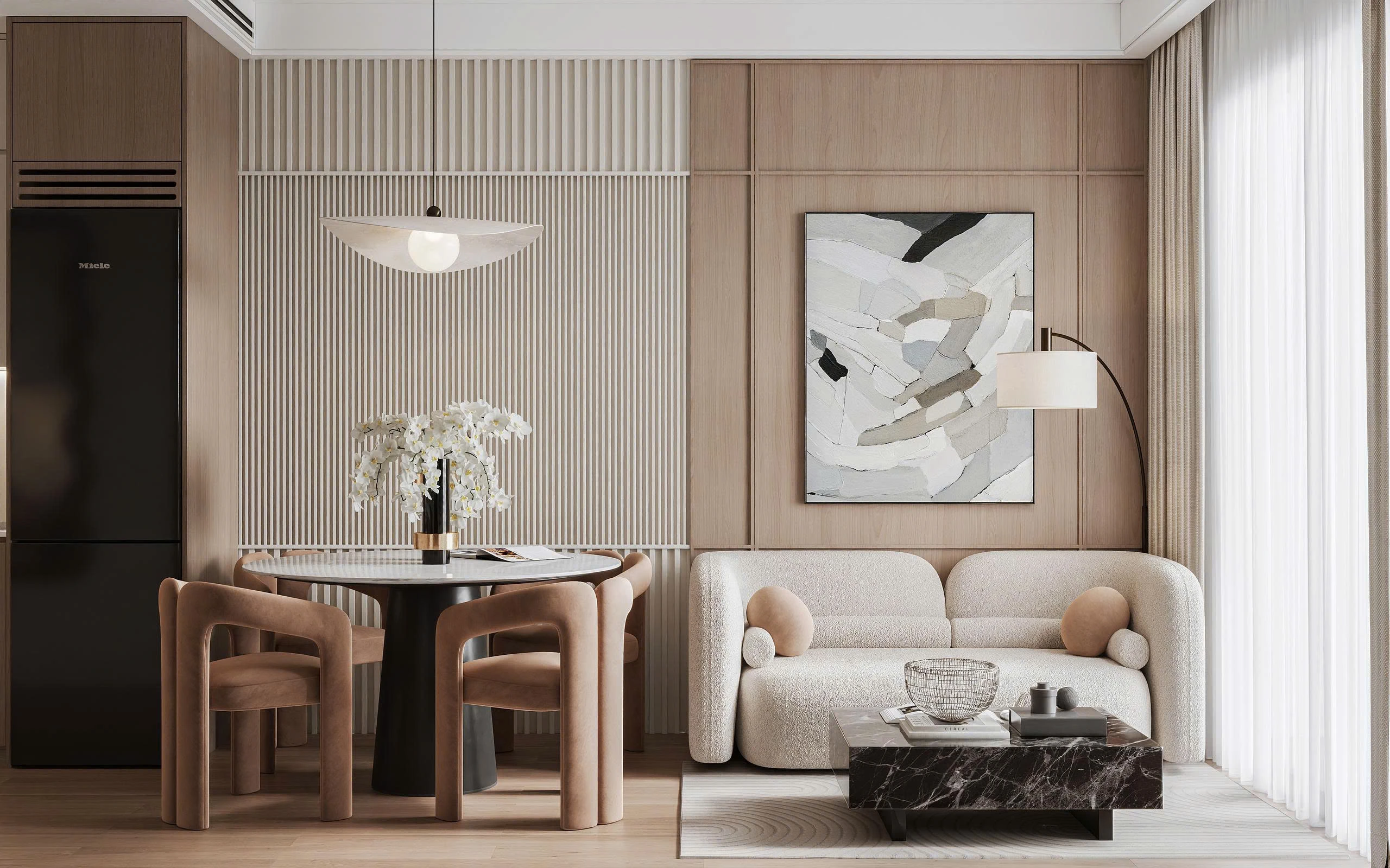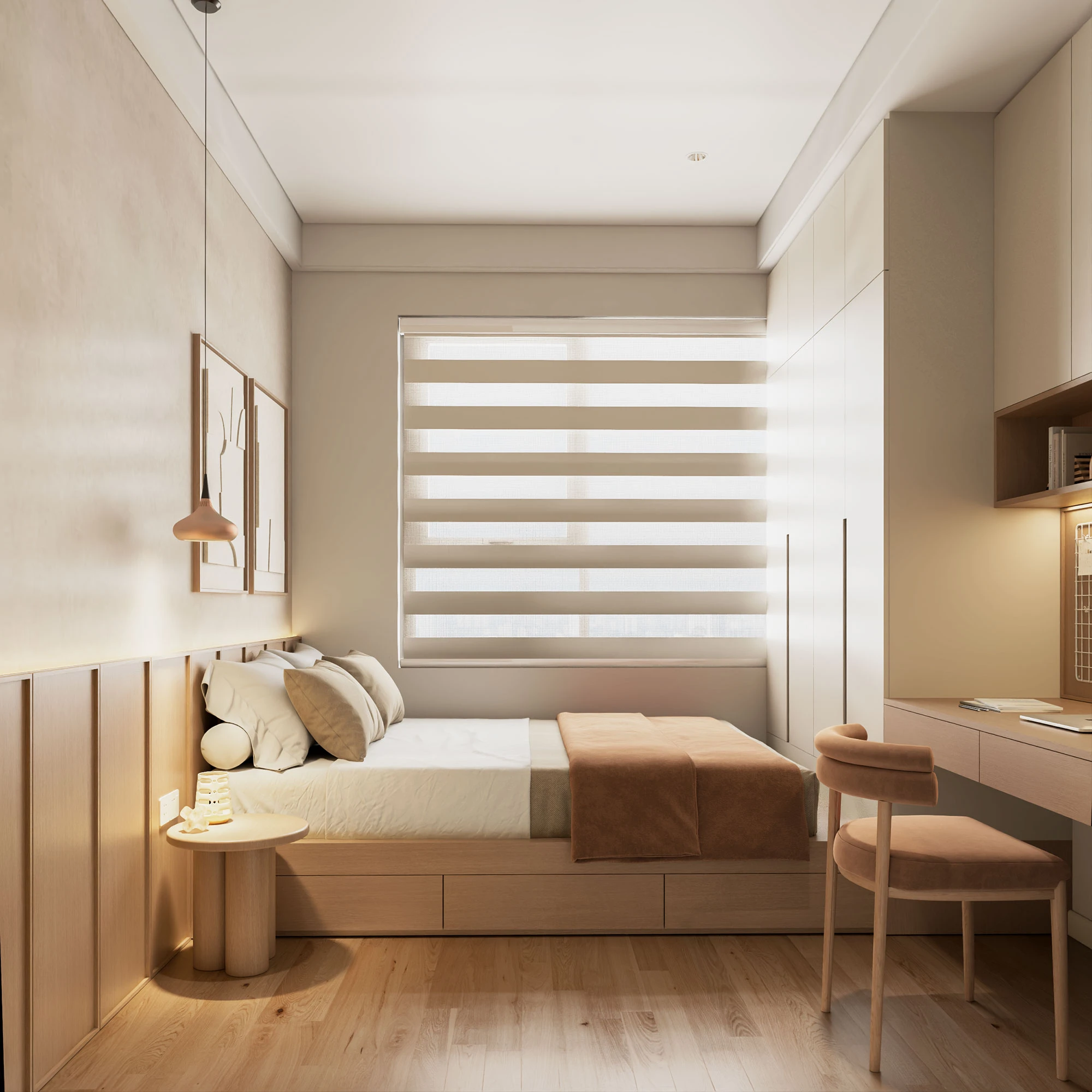 The Ori Phương Mai mở ra khoảng thở an yên – nơi Wabi-Sabi mộc mạc hòa quyện cùng nét hiện đại tinh gọn. Tông gỗ ấm áp, gam màu trung tính và ánh sáng kính mờ tạo nên không gian gần gũi điểm xuyết thêm sắc vàng đồng sang trọng. Căn hộ được “gấp” nên từ từng chi tiết nhỏ giàu cảm xúc, mở ra khởi đầu mới nơi các gia đình nhỏ kiến tạo tổ ấm vững bền.