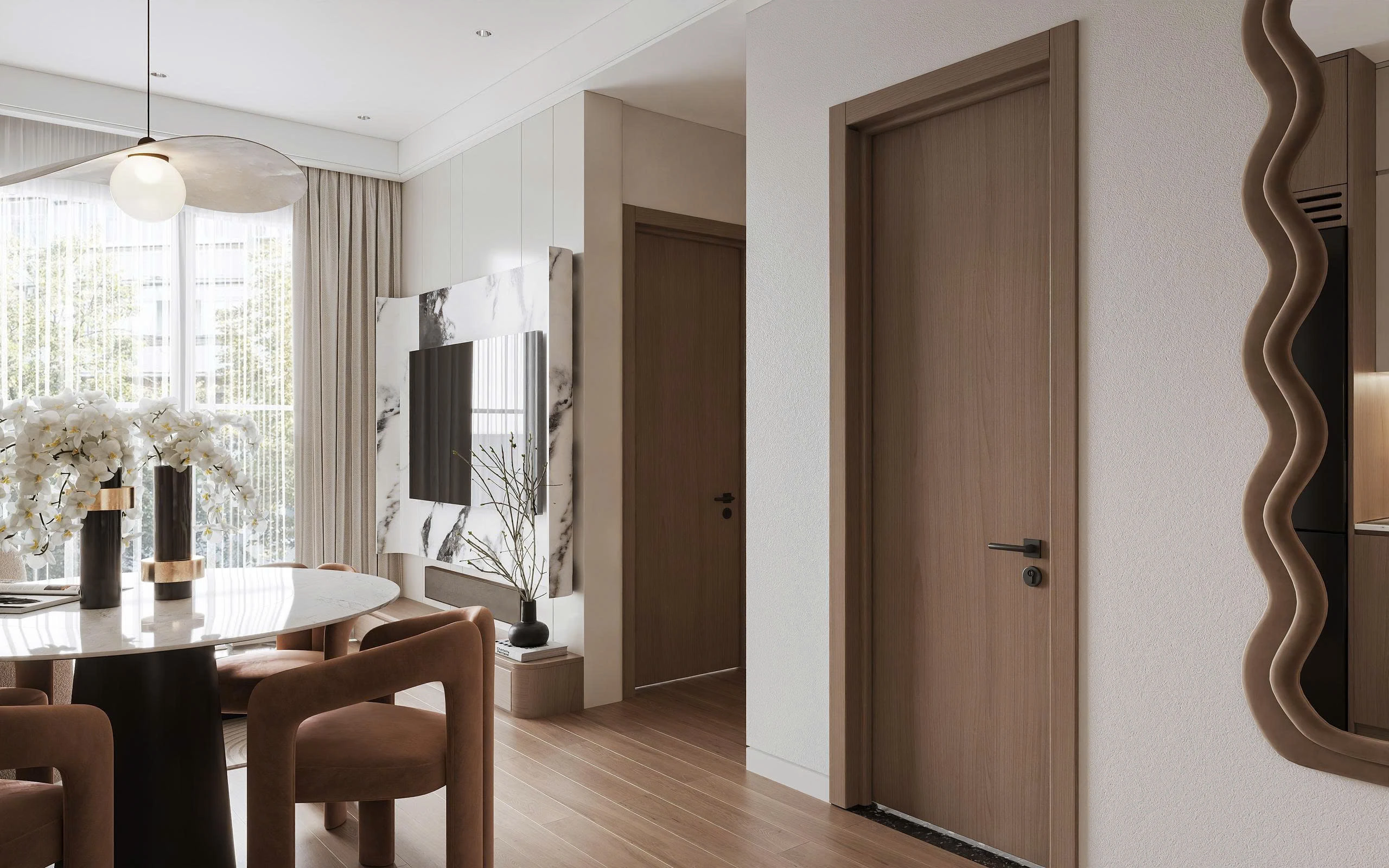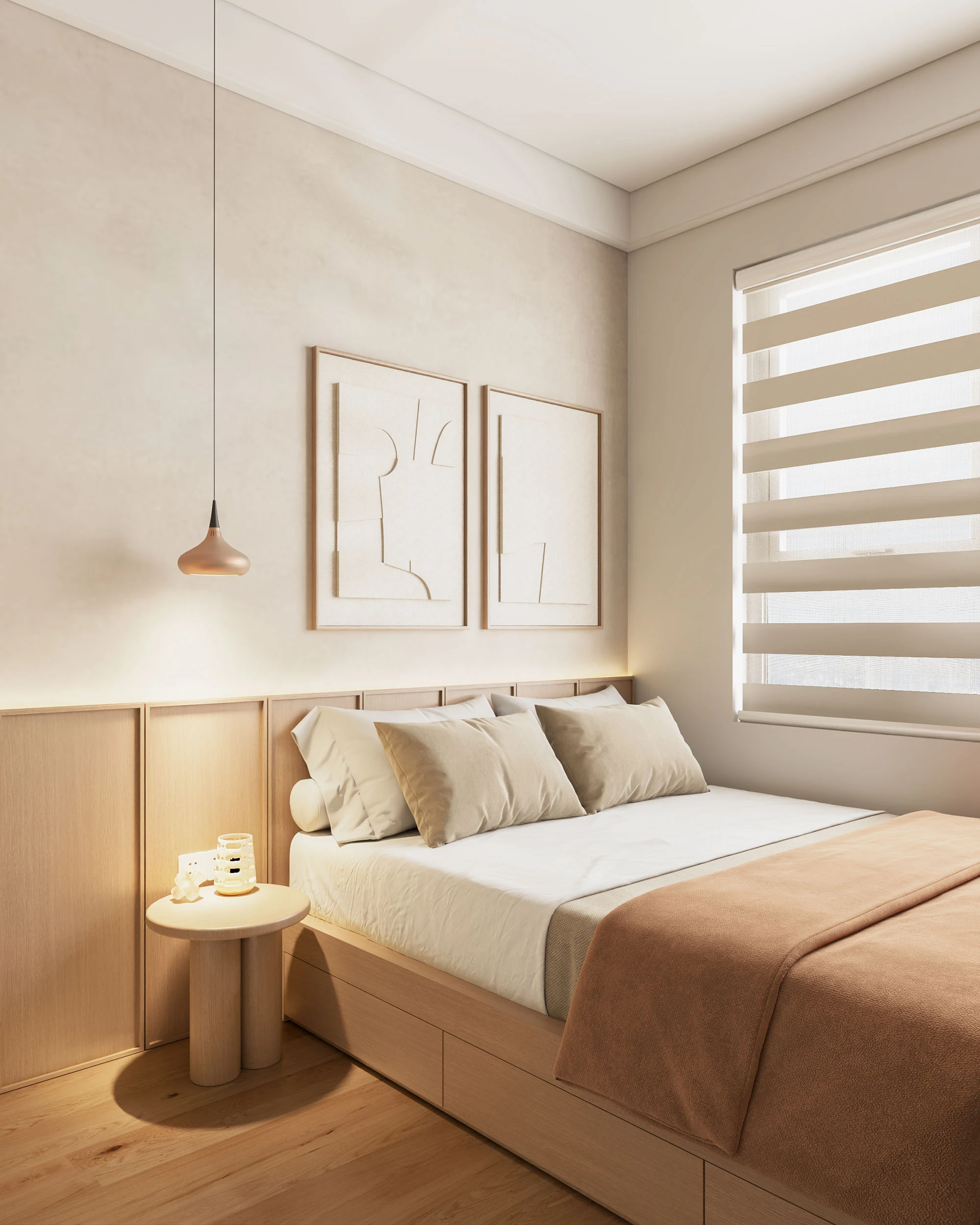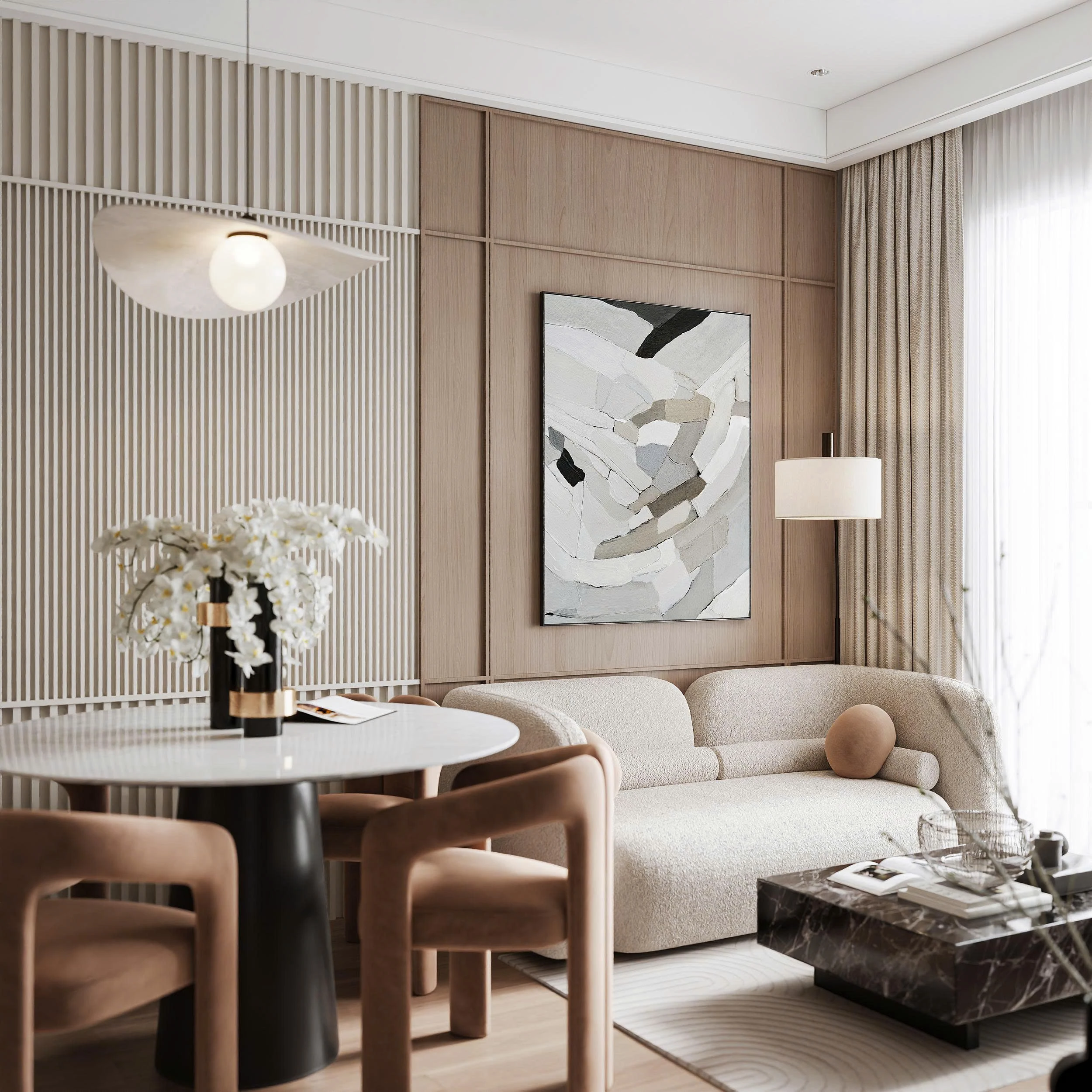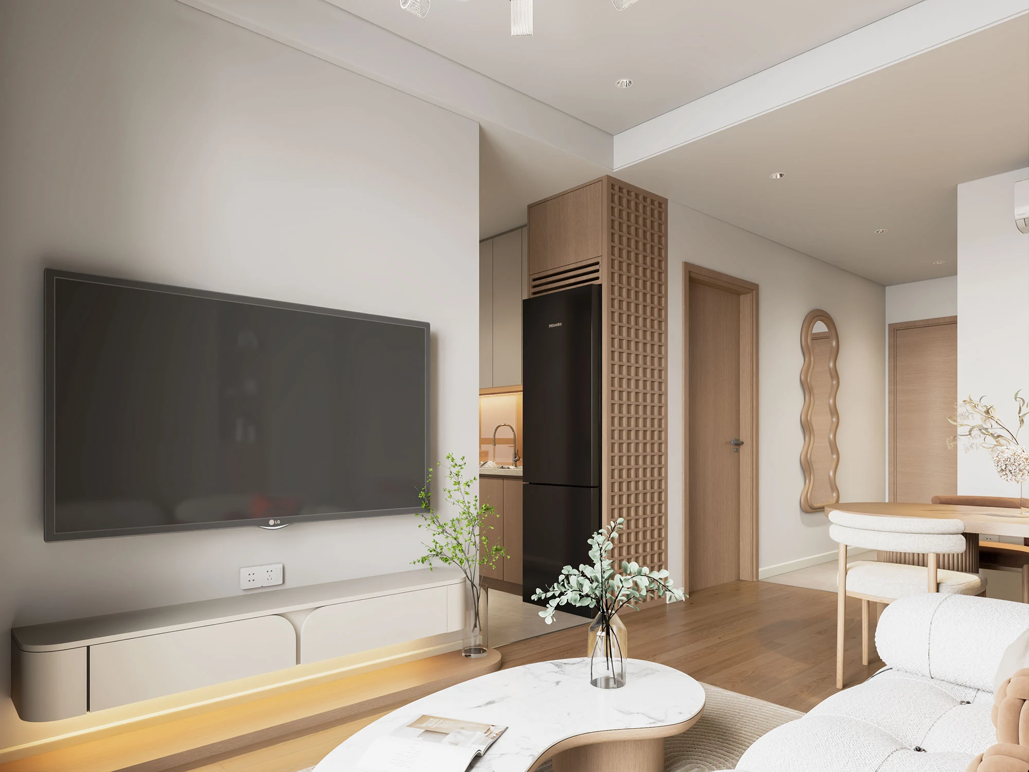 The Ori Phương Mai mở ra khoảng thở an yên – nơi Wabi-Sabi mộc mạc hòa quyện cùng nét hiện đại tinh gọn. Tông gỗ ấm áp, gam màu trung tính và ánh sáng kính mờ tạo nên không gian gần gũi điểm xuyết thêm sắc vàng đồng sang trọng. Căn hộ được “gấp” nên từ từng chi tiết nhỏ giàu cảm xúc, mở ra khởi đầu mới nơi các gia đình nhỏ kiến tạo tổ ấm vững bền.